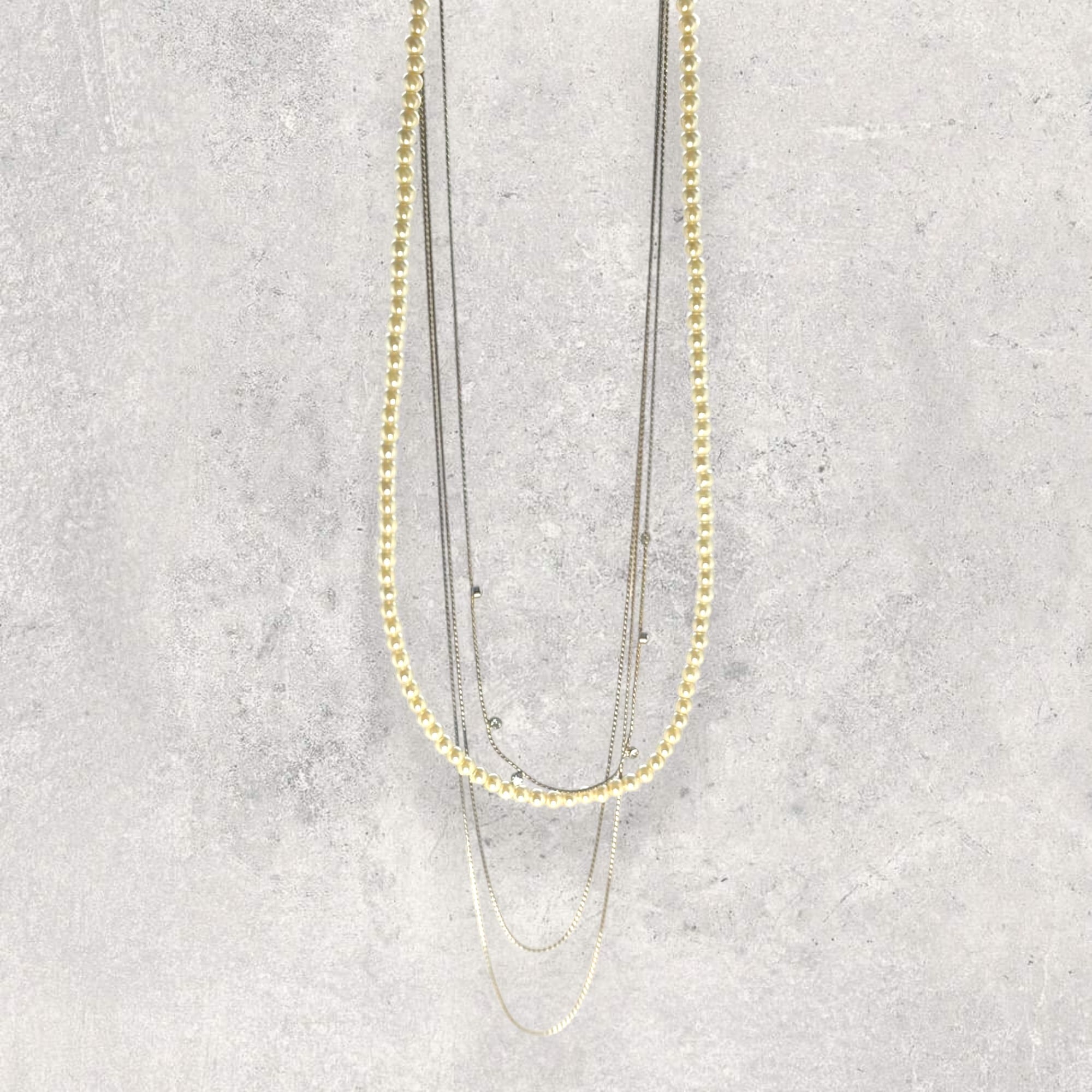 煌びやかな3連パールネックレス。