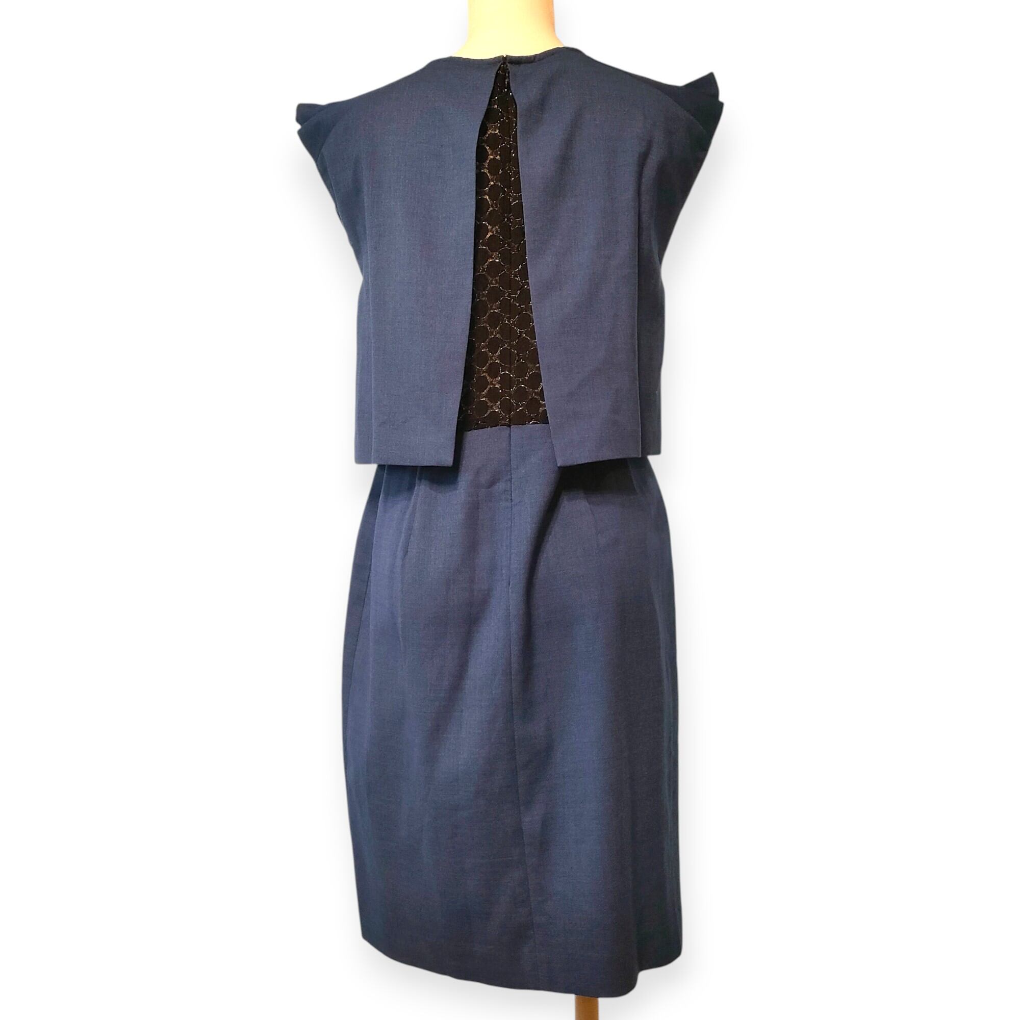 ストレートなシルエットのワンピースの上に、トップスが重なったドレス