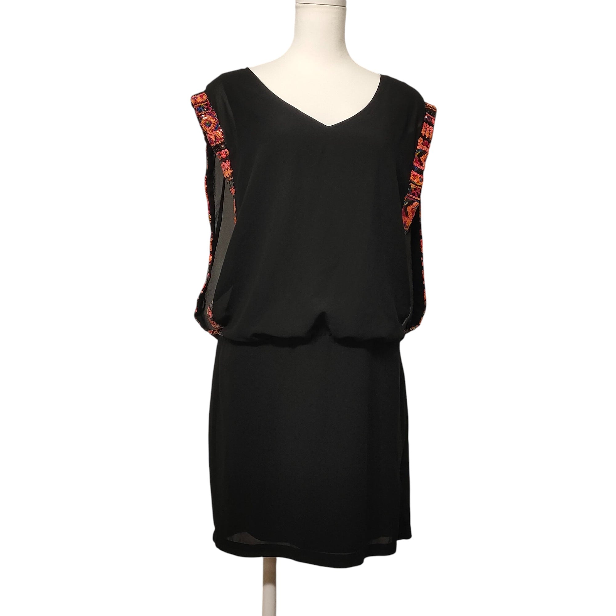 肩からウエストにかけてスパンコールのアクセントラインがインパクトを印象付けるフォーマルドレス