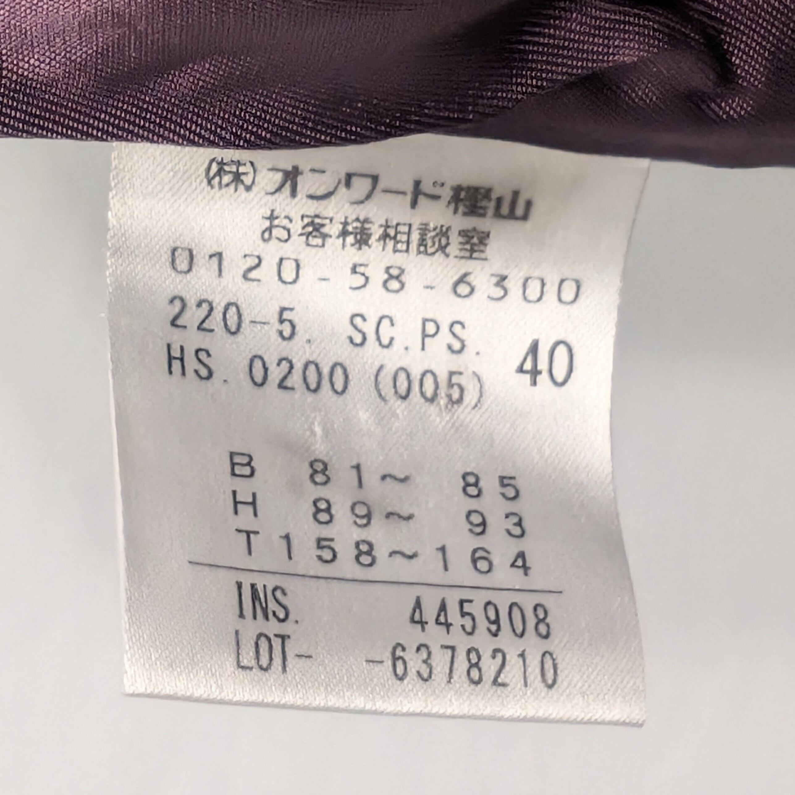 表記サイズ 40 B81~85/H89~93/T158~164